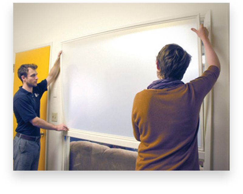 Peel remaining film from the front side of the insert and wipe clean with microfiber cleaning cloth (see cleaning note in step 6, or review Indow Care Guide). Visually check all Indow inserts for any defects – any defects should be reported to your representative immediately (see the Receiving & Handling Guide for what to look for, and how to report damage).